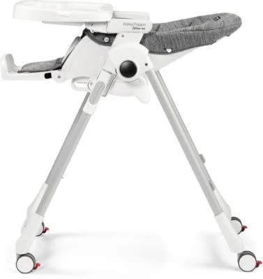 Der Hochstuhl Prima Pappa Follow Me von Peg Perego passt sich individuell den Bedürfnissen des Kindes an. Bei Bedarf kann sogar die Fußstütze verstellt werden, so dass die Beine kleiner Kinder nicht in der Luft hängen müssen. Das Doppeltablett lässt sich im Handumdrehen abnehmen und in der Spülmaschine reinigen. Außerdem kann der Abstand zwischen Essbrett und Kind individuell eingestellt werden. Dank der Durchrutschsicherung und des 5-Punkt-Gurtes ist ein sicheres Sitzen garantiert. 4 Rollen ermöglichen ein leichtes Verschieben des Hochstuhls. Wenn er einmal nicht benötigt wird, kann er kompakt zusammengeklappt werden und steht in diesem Zustand frei.