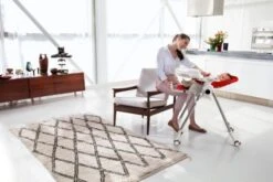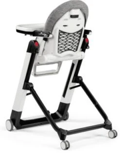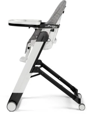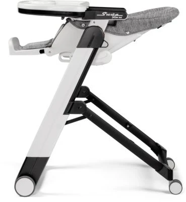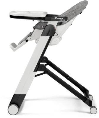Der Hochstuhl Siesta Follow Me von Peg Perego ist besonders praktisch, denn er verwandelt sich mit wenigen Handgriffen in eine Babyliege. Die Neigung des Sitzes lässt sich in 5 Stufen bis auf 150° verstellen, so dass Sie eine bequeme Babyliege erhalten. Die Höhe der Sitz- und Liegefläche kann 9-fach verstellt werden, auch in der Liegeposition. Damit kleine Kinderfüße nicht frei in der Luft hängen, kann die Fußstütze hochgeklappt werden. Ist Ihr Kind größer, lässt sich die Stütze einfach wieder herunterklappen. Der Hochstuhl ist mit einem sehr großen doppelten Tablett ausgestattet, das 2-fach in der Entfernung zum Kind verstellt und komplett abgenommen werden kann. Sowohl das Verstellen der Sitzneigung als auch des Tablett kann mühelos mit einer Hand vorgenommen werden. Dank des „Stop & Go“-Bremssystems steht der Hochstuhl stets sicher und fest auf dem Boden. Der anatomisch geformte Sitz und die gepolsterte Sitzfläche bieten einen hohen Sitz- und Liegekomfort. Zwei Räder und zwei Doppelrollen sorgen dafür, dass Sie den Sitz ganz leicht verschieben können, um Ihren Nachwuchs immer im Blick zu haben. Dank eines 5-Punkt-Gurtes mit Schrittgurt und Schnellverschluss und der Durchrutschsicherung sitzt Ihr Liebling optimal geschützt. Dank des kompakten Faltmaßes können Sie den Hochstuhl in jeder Ecke verstauen.