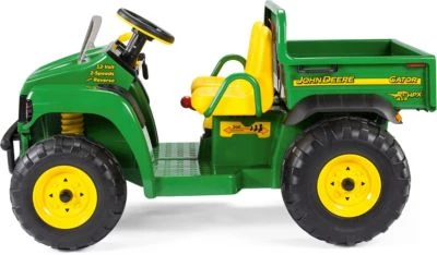 Dieser tolle „John Deere Pick Up“ von Peg Perego wird Kinder mit seinem großem Kipperaufbau für bis zu 10 kg Ladung begeistern! Mit den griffigen Profilreifen macht das Fahren auch abseits der Straße gleich doppelt so viel Spaß. Dank des Kippers können die Kinder ihre Sachen praktisch von einem zum anderen Ort transportieren oder Sand und Blätter verladen. Dank der zwei verstellbaren Sitze können sogar zwei Kinder gleichzeitig Fahrspaß erleben. Zwei Vorwärts- und ein Rückwärtsgang bieten viele lustige Fahrmöglichkeiten für unterwegs. Zusätzlich gibt es ein Gas- und ein Bremspedal. Vor Hindernissen können die kleinen Fahrer sogar hupen. Die mitgelieferte Batterie ist wiederaufladbar, wodurch Kinder immer wieder spannende Ausflüge mit dem „John Deere Gator“ erleben können!