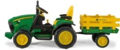 Der echte John Deere Traktor mit Anhänger von Peg Perego wird Ihren kleinen Nachwuchs-Fahrer mit seinem authentischen und dennoch kindgerechten Motiv begeistern! Mit diesem leistungsstarken Traktor geht die „Feldarbeit“ wie von Zauberhand. Die groĂźen Profilreifen sorgen fĂĽr perfekten Grip auf Asphalt und im Gelände. Dank des Anhängers können die Kinder ihre Sachen auch immer und ĂĽberall von einem Ort zum anderen transportieren. Zwei Vorwärts- und ein RĂĽckwärtsgang, die mit dem Pedal eingelegt werden können, sorgen fĂĽr lustigen und abwechslungsreichen FahrspaĂź auf allen Routen. NatĂĽrlich gibt es auch eine Bremse. Der Sitz lässt sich sogar verstellen, wodurch der Traktor zum langfristigen Begleiter fĂĽr Ihr Kind wird.