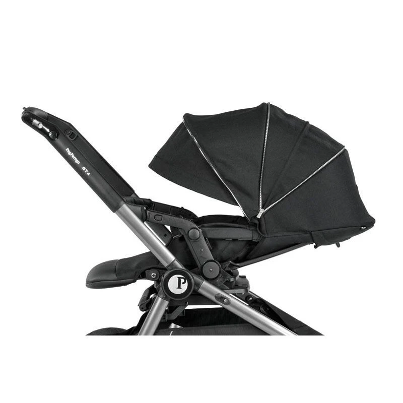 · Der Kinderwagen GT4 ist ideal für sportliche und abenteuerlustige Eltern, die gerne im Gelände unterwegs sind. Dank den großen Luft-Hinterräder, wird der Wagen auch auf nicht asphaltierten Straßen und Wegen optimal gefedert. Er ist groß und robust und fährt sich angenehm und sicher, nicht nur in der Stadt. Die geräumige Kinderwagenwanne (separat erhältlich) und der umsetzbare Sportwagensitz runden das Komplettset ideal ab. Das Gestell kann mit nur einer Hand blitzschnell wie ein Buch zusammengefaltet werden und nimmt nur wenig Platz im Kofferraum oder Hausflur ein. Die Räder sind abnehmbar, das macht den Wagen bei Bedarf kompakter im Faltmaß. Eleganter, handgenähter Lederimitat-Schieber sorgt für eine angenehme Haptik beim Fahren auch mit nur einer Hand. Ausziehbarer Teleskopschieber, kann in verschiedene Höhen eingestellt werden. Große Hinterräder mit Luftbereifung und schwenkbare Vorderräder mit eleganten Speichen und Profil. Hinterräder und Vorderräder mit hochwertigen Kugellagern sorgen für optimalen Fahrkomfort, auch im Gelände. Seitliche Feststellung der schwenkbaren Vorderräder. Geräumiger und stabiler Netzkorb mit viel Platz für Einkäufe. Der Sportwagensitz kann mit nur einem Handgriff auf das Gestell aufgesetzt werden. Die Kinderwagenwanne kann mit nur einem Handgriff auf das Gestell aufgesetzt werden. Bei Bedarf kann der GT4 durch einen Adapter zum Geschwisterwagen umfunktioniert werden (Zubehör zum Umbau separat erhältlich). Die Babyschale Primo Viaggio SL, Primo Viaggio i-Size oder Primo Viaggio Lounge können auf das Gestell aufgesetzt werden (Adapter im Lieferumfang enthalten), Babyschalen anderer Hersteller können mit einem Adapter auf dem Gestell befestigt werden (Adapter separat erhältlich). Der Sportwagenaufsatz ist ein umsetzbarer Sitz, entweder mit Blickrichtung zu den Eltern oder in Fahrtrichtung zur Straße. Der Sitz kann bis 22 kg belastet werden. Großes Sonnenverdeck mit UPF 50+ Sonnenschutz, kann mit einem Reißverschluss erweitert werden, so dass das Kind stets ausreichend vor Sonne geschützt ist. Eleganter, handgenähter Frontbügel aus Lederimitat, leicht zu reinigen. Der Frontbügel kann an einer Seite geöffnet und aufgeklappt werden, oder ganz abgenommen werden. Neigung der Rückenlehne individuell einstellbar, ideal für ein Schläfchen zwischendurch. Mit 5-Punkt-Sicherheitsgurt und Gurtpolster. Neigung der Fußstütze verstellbar. Mit passender Beindecke für kältere Tage. Bezug und Stoff komplett abnehmbar und bei maximal 30°C von Hand waschbar. und Stoff komplett abnehmbar und bei maximal 30°C von Hand waschbar.